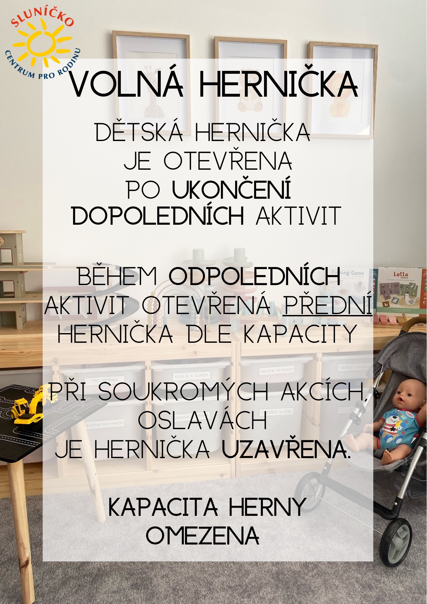 Od ledna opět otervíráme naši herničku Sluníčko - místo plné radosti, kde si zábavu najde opravdu každé dítko. Těšíme se na malé i velké navštěvníky:![]()